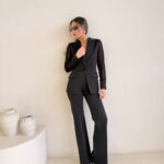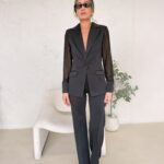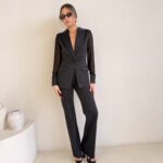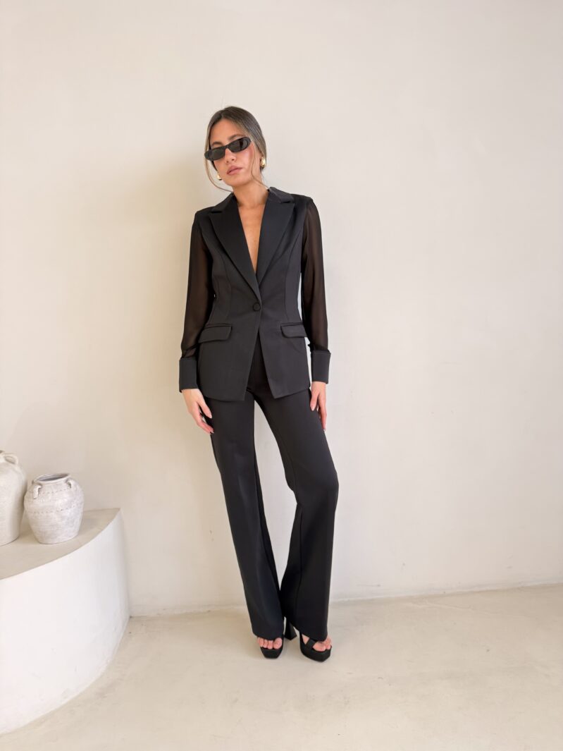 חליפה מבד מחטב בשילוב שיפון בידיים ובגב