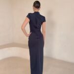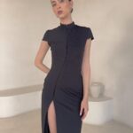 בד לייקרה,שילוב של רוכסן קרסים לכל אורך השמלה כך שניתן לשחק עם עם זה,לפתוח ולסגור היכן שרוצים,לפתוח בחזה או לסגור את השסע וכו…